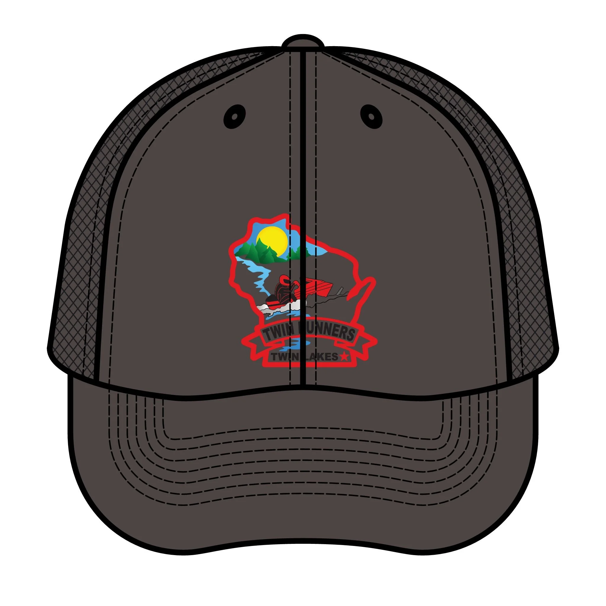 This retro trucker hat has a detailed embroidered badge on the front hints at weekend escapes: pine trees, a snowmachine and some snow. It sits mid-profile on the head and is lightweight but durable. A subtle statement of where you’ve been and who you support.